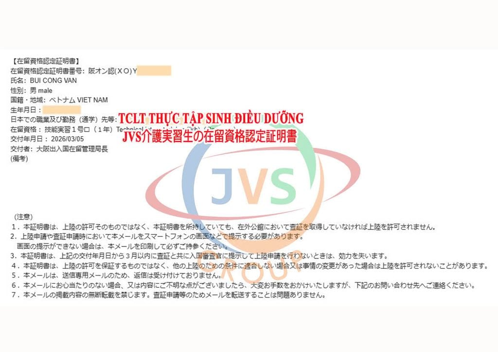 2025年12月9日 弊社2名の実習生【介護:女性1名・男性1名】の在留資格認定証明書が下りました。おめでとうございます!